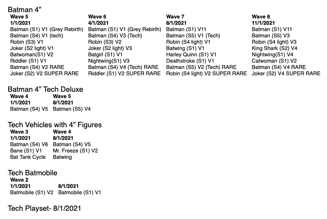 Spin Master apparently begins with the name of the figure and the sculpt (S) number, followed by the version (V) number that designates the different color/paint decos that sculpt receives. So the second color of the third sculpt of Batman is “Batman (S3) V2”.