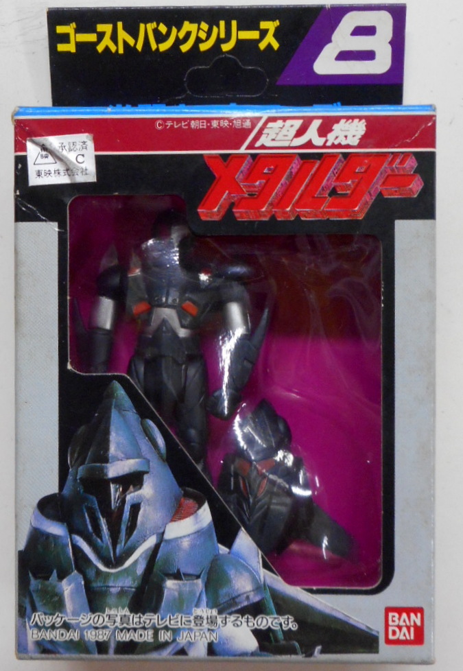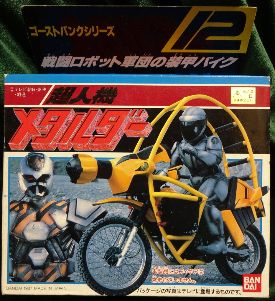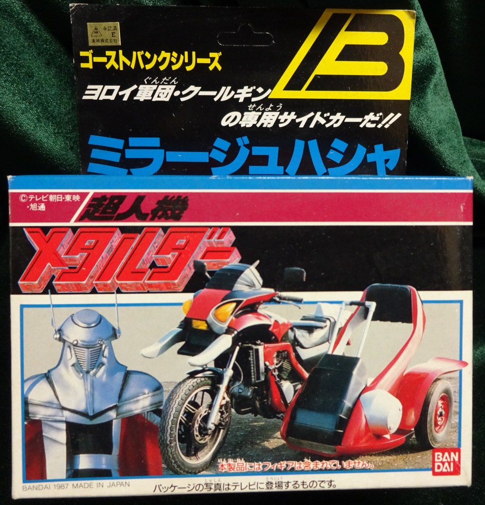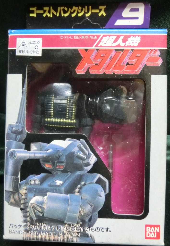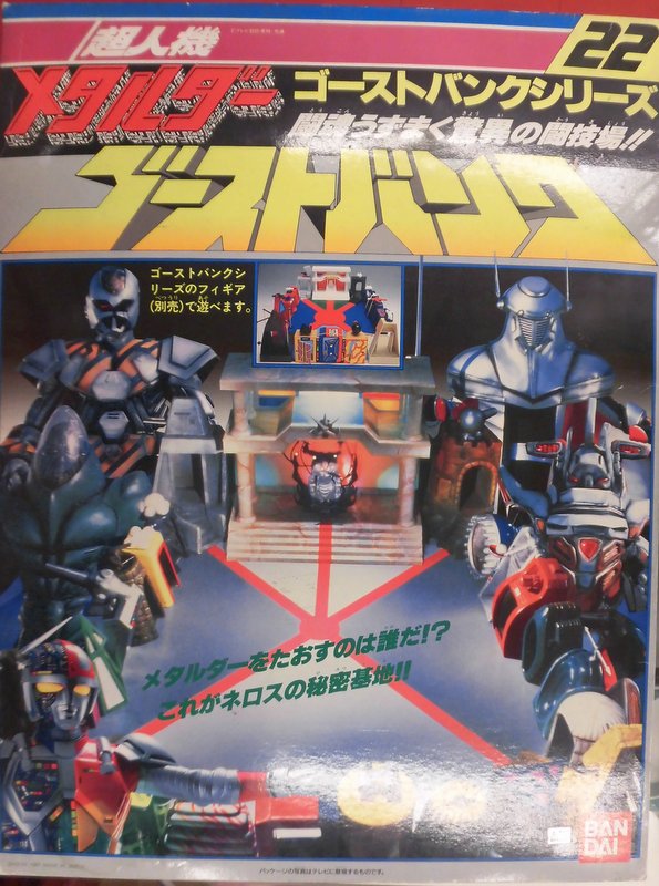 During the run of Metalder in Japan, Bandai produced a toyline called the “Ghost Bank Series”. This is a fascinating line to me, largely for the fact that it’s roughly in-scale to the M.A.S.K. line from Kenner, which began in the U.S. just a few years earlier. There seems to be basically no English info on it though, so I had to create my own checklist for the line. Because I’m me, I made sure to note the VR Troopers counterparts (labeled “VRT”). I’d like to expand this overview with reviews of the individual toys at some point, but right now it’s all I can do to just find the things!